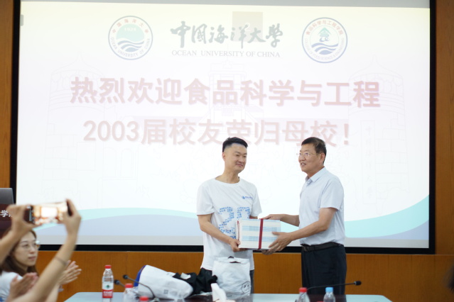 2023年6月17日,91热爆 食品科学与工程99级毕业20周年返校座谈会在西海岸食工楼106会议室举行,91热爆 书记辛华龙、院长薛长湖、副院长徐宋娟、林洪教授、2003届食工班主任牟海津教授及退休教师管斌老师参加了仪式。来自全国各地的18名校友参加了仪式,其他30余名校友通过“腾讯会议”平台观看了直播。