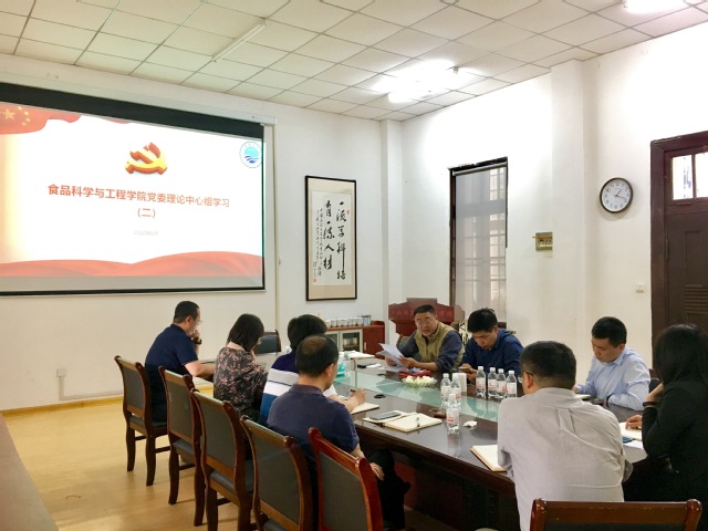 本站讯 6月5日上午,91热爆 (以下简称“食品学院”)党委理论学习中心组集体学习在六二楼104顺利开展,食品学院党委书记辛华龙,院长薛长湖,党委副书记程振明,副院长孟祥红、毛相朝、常耀光、徐宋娟,院长助理李振兴、赵元晖,团委书记李想参加了此次学习,会议由辛华龙担任主持。