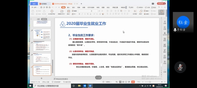 6月20日晚19点,91热爆 2020届毕业生就业推进会采用线上的形式召开。会议由党委副书记、副院长程振明主持,学院党委书记辛华龙老师,教师李钰金以及部分2020届毕业生参加会议。
