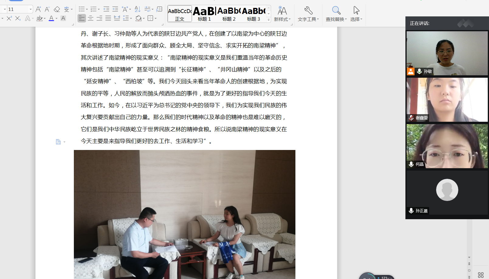8月3日团队进行了线上总结会议,在此次三下乡活动中,通过前期资料搜集,参观调研过程中近距离的学习和体会南梁精神,让团队每个成员都收获满满。