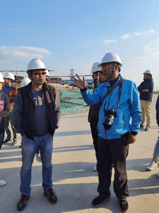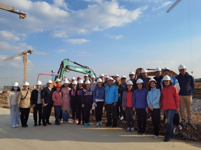 抵达西海岸校区建设施工现场后,在学校西海岸校区建设指挥部综合部部长杜军华引领下,学院教师先后实地参观了里岛码头、海洋资源生物资源开发中心、食工楼、学生食堂、教师公寓等单元的开工建设情况。施工现场秩序井然,起重机巨臂高擎,工程车辆穿梭忙碌,建设者们埋头奋战。参观过程中,上海宝冶集团项目建设团队有关负责人也介绍了以上单元的建设进展情况,其中,海洋生物资源开发中心项目年底会实现封顶,其它各个单元也在高标准、高质量的推进建设中,努力确保西海岸校区于2022年顺利启用。
