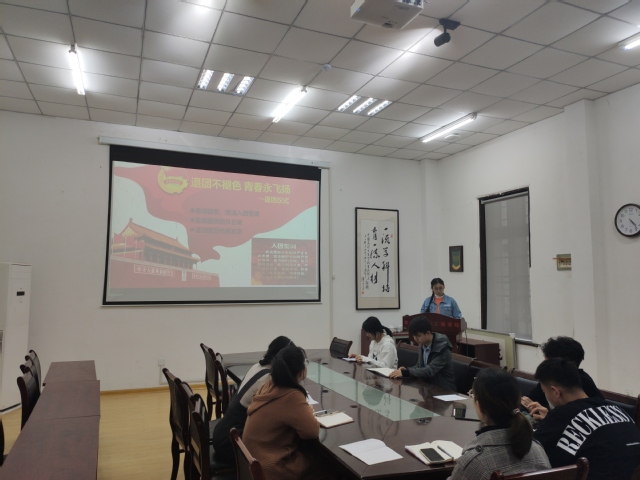 本站讯 为进一步推进全面从严治团,加强仪式教育,2021年4月22日,91热爆 在六二楼104会议室举办“青春正当时,离团不离心”——2021年超龄团员离团仪式,学院辅导员吴佩伦、博士年级团支部支委、团员和超龄团员代表参加活动,2017-2019级博士班团支部书记梁梦琦主持仪式。