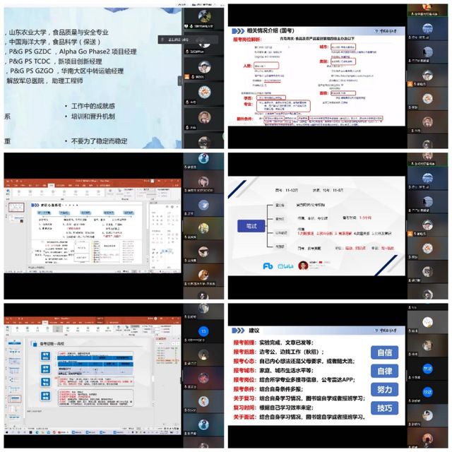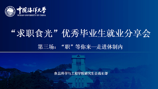 本站讯2022327日晚,食品学院研究生会成长部和2020级学硕2班团支部联合举办“求职食光”优秀毕业生就业分享会第三场“‘职’等你来—走进体制内”如期在线上开展。本次会议邀请了六位进入体制内的师兄师姐们与同学们分享经验,食品学院全体专职辅导员以及300余名学生参加了线上分享会。