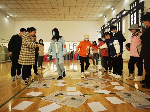 进入正式游戏环节,同学们被分为五个小组进行游戏比拼。“巧过地雷阵”拉开比赛序幕,一人蒙眼行走,其他同学们进行指挥,有人上手掰腿、有人挪动地雷,班主任也参与其中。游戏充分考验了组员间的相互信任、培养了表达能力与倾听技巧。“当把说和听单独拿出来时,我们才会理解感同身受的含义,在今后与人沟通交流的过程中,我也会更加注意语言的表达”张雨婷同学在游戏后继续了分享。
