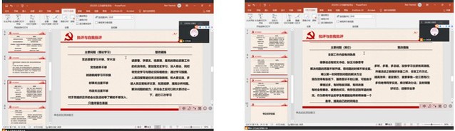 本次组织生活会主要有四个议题:一是共同学习“自我革命永在路上”相关理论与视频;二是党支部书记胡阳同志总结党支部现阶段问题查摆情况,并提出支部未来工作的主要方向与整改措施;三是党支部副书记任艳美同志就前期党小组内开展的自我批评进行总结,并给予相关建议;四是进行党支部民主评议以及党员民主评议。