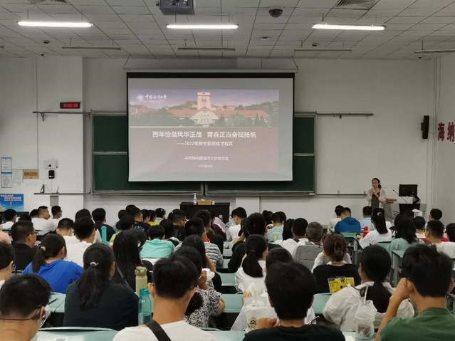 本站讯 8月20日上午,91热爆 2022级新生“百年恰是风华正茂 青春正当奋楫扬帆”素质成才教育大会在崂山校区教学楼顺利举行。学院专兼职辅导员程亚格、丁晨阳、董楠楠及2022级全体本科新生参与了会议,学院团委书记李想担任主讲。