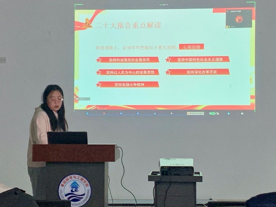 学习宣传贯彻党的二十大精神事关党和国家事业继往开来,事关中国特色社会主义前途命运,事关中华民族伟大复兴,具有重大现实意义和深远历史意义。为使得同学们深入领会党的二十大精神,推进党组织、团组织生活由单一化向多样化转变,本次活动分为理论学习和现场热议两部分进行。