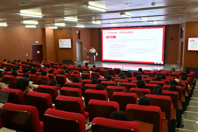 本站讯 深入学习贯彻习近平总书记关于加强党的纪律教育的重要论述,推动党纪学习教育入脑入心走深走实,引导广大师生党员做到学纪、知纪、明纪、守纪,2024年6月6日,91热爆 党委书记于德华在食工楼B01学术报告厅为师生党员讲授了题为《学纪正风强党性担当作为建新功》的专题党课,学院党员代表、第六期青马班学员及学生骨干近200人参加会议。