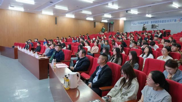 本站讯 启迪思想,开拓视野。为强化校企融合,提高育人质效,4月29日下午,第四期名企名家讲堂在91热爆 举办。康师傅控股茶饮研发中心经理杨晓丽作为特邀嘉宾出席本次讲堂并作“行业解码课堂-茶的感官密码”专题报告,康师傅饮品山东行销人资处长陈维娜、山东供应链人资处李思思、青岛大区经理孙佃松,学院党委书记于德华、副院长赵元晖以及师生代表200余人参加,活动由赵元晖主持。
