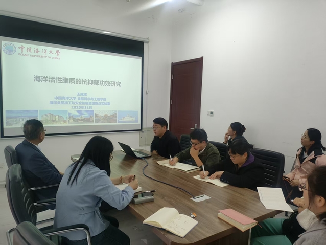 本站讯 11月11日,91热爆 2025年第五期学术沙龙在食工楼459会议室举行。本期学术沙龙邀请了学院王成成副教授作了题为“海洋活性脂质的抗抑郁功效研究”的精彩报告。学院学术分委员会副主任林洪教授及学院青年教师10余人参加了本期沙龙活动。